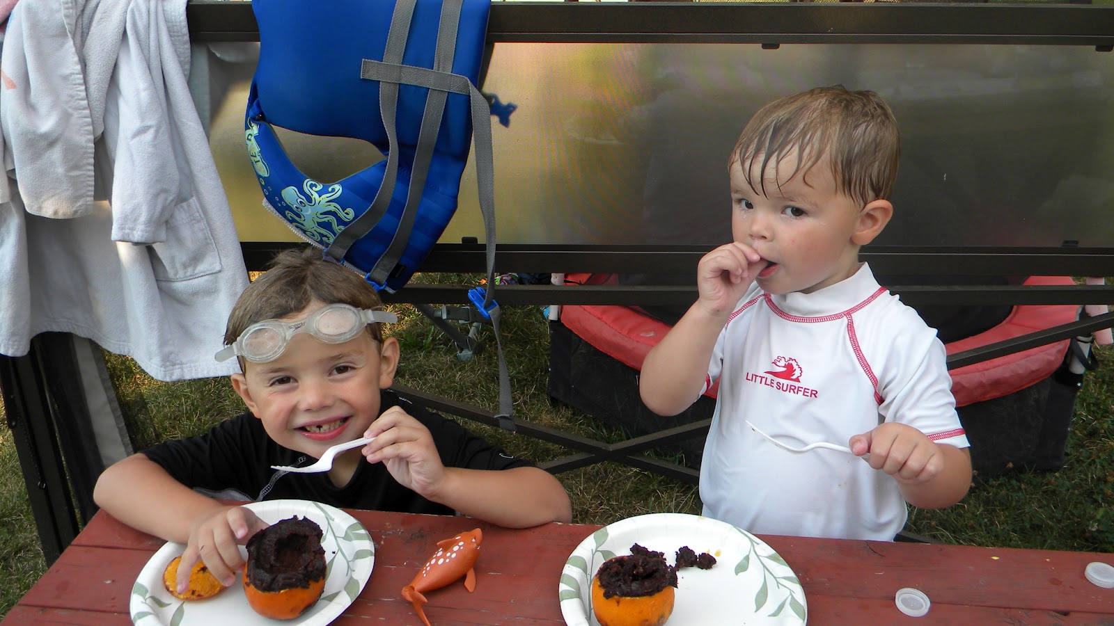 Angela's Kitchen and myself have been doing a gluten free camping series. I have also teamed up with Bob's Red Mill to work on a camping series with them as well. (I camp all summer so this is what we really eat!) Today's recipe/technique is a bit different but is tons of fun. We are going to bake our brownies in an orange. Yep an orange and it really turns out yummy.